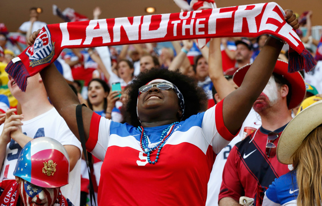Αμερικανοί οπαδοί με τα κασκόλ τους στο γήπεδο.