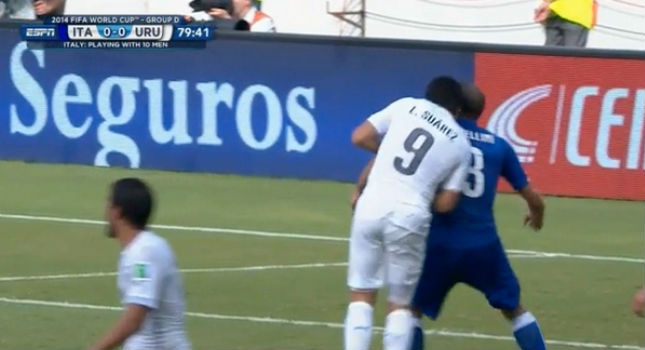 Στο ματς της Ουρουγουάης με την Ιταλία, ο Λατινοαμερικάνος φάνηκε να δαγκώνει στον ώμο τον Κιελίνι! Ο διαιτητής δεν τον τιμώρησε (ίσως το κάνει η FIFA αργότερα), ενδεχομένως δεν είδε και καλά την φάση, αλλά ο Ιταλός αμυντικός διαμαρτυρήθηκε έντονα. Μάλιστα, έδειξε και τον… δαγκωμένο ώμο του που δεν αφήνει και ιδιαίτερη αμφισβήτηση στο ότι συνέβη το γεγονός!
