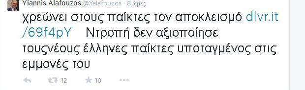 «Χρεώνει στους παίκτες τον αποκλεισμό. Ντροπή δεν αξιοποίησε τους νέους έλληνες παίκτες υποταγμένος στις εμμονές του», ανέφερε στο Twitter ο πρόεδρος της ΠΑΕ Παναθηναϊκός.