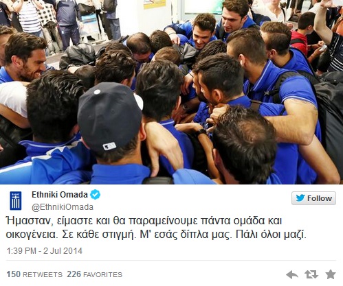 Μήνυμα ενότητας από την Εθνική ομάδα ποδοσφαίρου μέσω του προφίλ στο twitter.