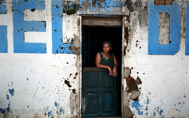 Η 62χρονη Μαρία Ολιβέιρα στην πόρτα του σπιτιού της.