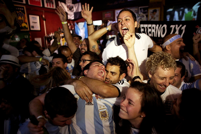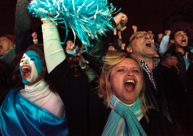 Η διαδικασία των πέναλτι δεν είχε προλάβει να τελειώσει και οι οπαδοί της Αργεντινής στη Βραζιλία είχαν ξεσπάσει σε έξαλλους πανηγυρισμούς. Η αγωνία που μέχρι πριν από λίγο είχε κάνει το… λευκό να επικρατεί ως χρώμα στα -βαμμένα γαλανόλευκα- πρόσωπα τους, είχε δώσει τη θέση της στην ξέφρενη χαρά.