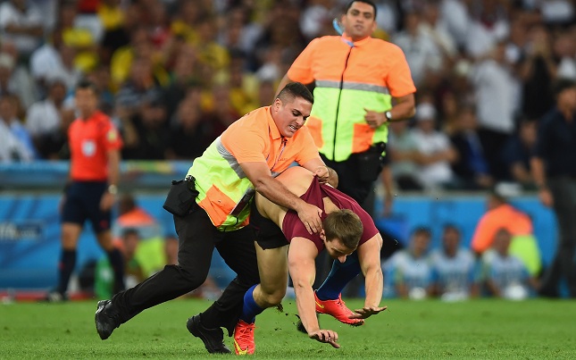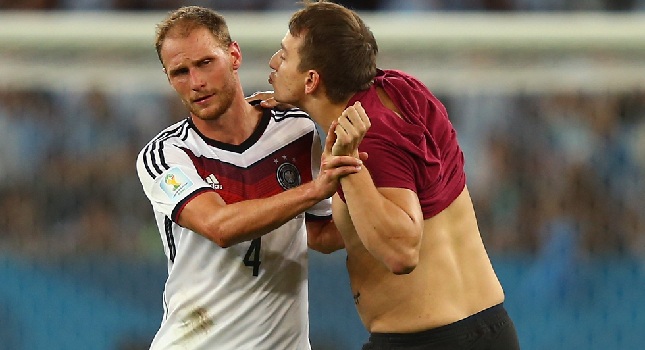 Ένας οπαδός, προφανώς της Γερμανίας, αλλιώς απλά θαυμαστής του Μπένεντικτ Χέβεντες «μπούκαρε» στο «Μαρακανά», την ώρα που συμπληρωνόντουσαν 83 λεπτά αγώνα και φίλησε τον 26χρονο αμυντικό.