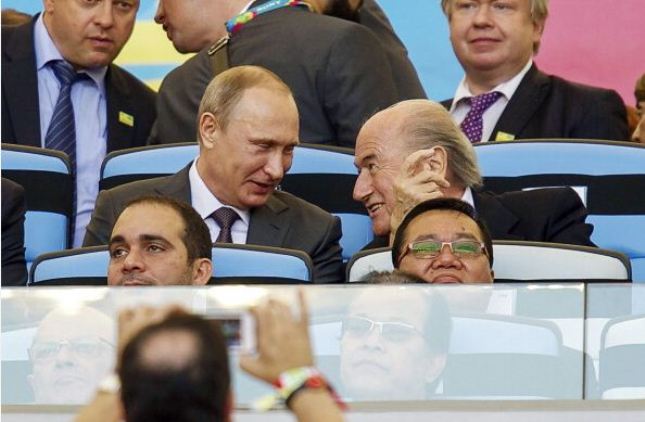Στη Βραζιλία για… δουλειές βρέθηκε ο Βλάντιμιρ Πούτιν, που βρήκε την ευκαιρία να μιλήσει στις εξέδρες με τον Σεπ Μπλάντερ.