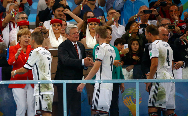 Την πρόκριση της ομάδας της στον τελικό του Μουντιάλ έναντι της Αργεντινής με 1-0 στο στάδιο Μαρακανά της Βραζιλίας πανηγύρισε η Καγκελάριος της Γερμανίας Άνγκελα Μέρκελ.