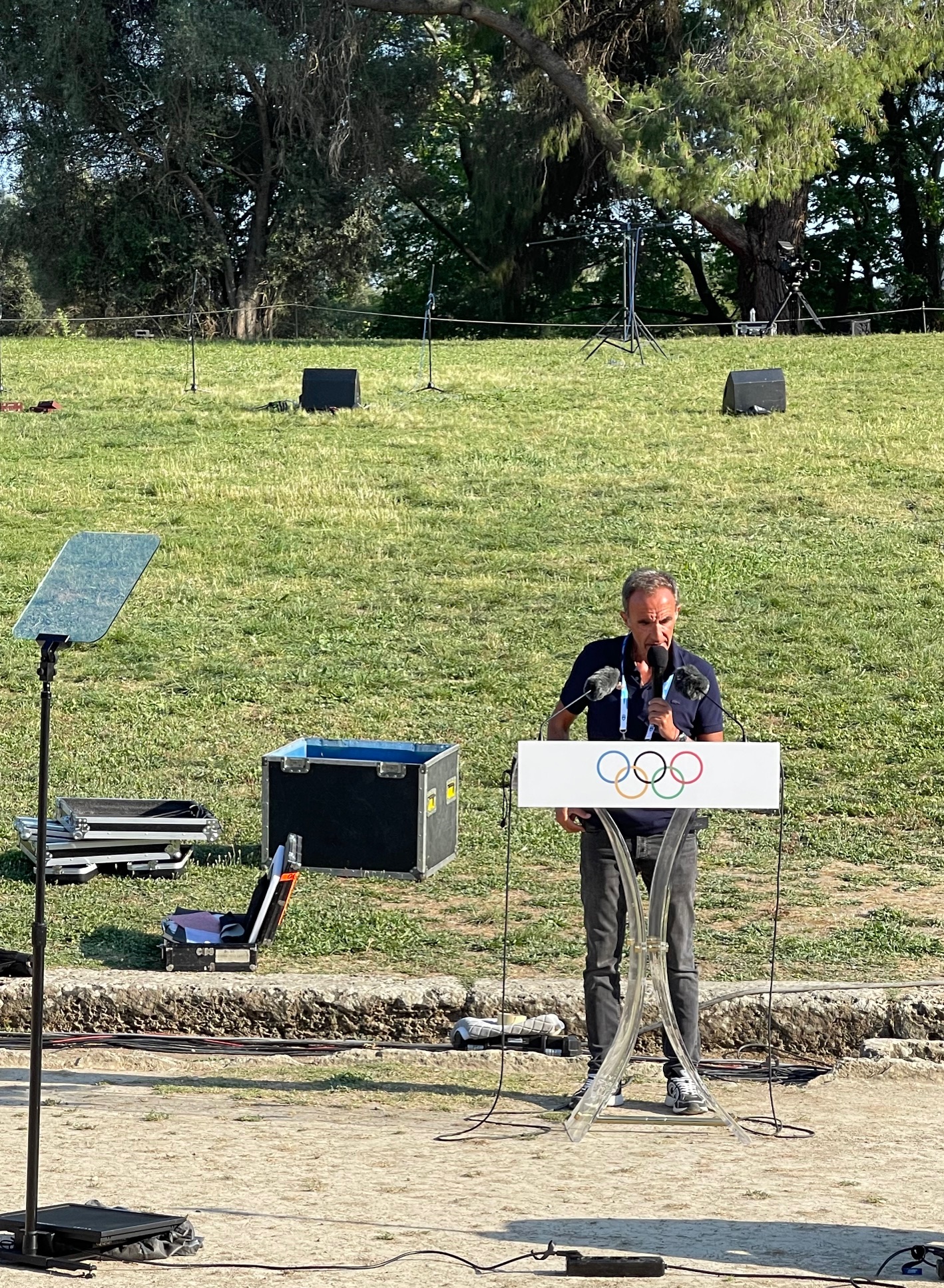 Ο Νίκος Αλιάγας, που όπως βλέπετε και στις φωτογραφίες, προβάρει τον λόγο του στα γαλλικά και τα ελληνικά, θα είναι ο παρουσιαστής της Τελετής Αφής.