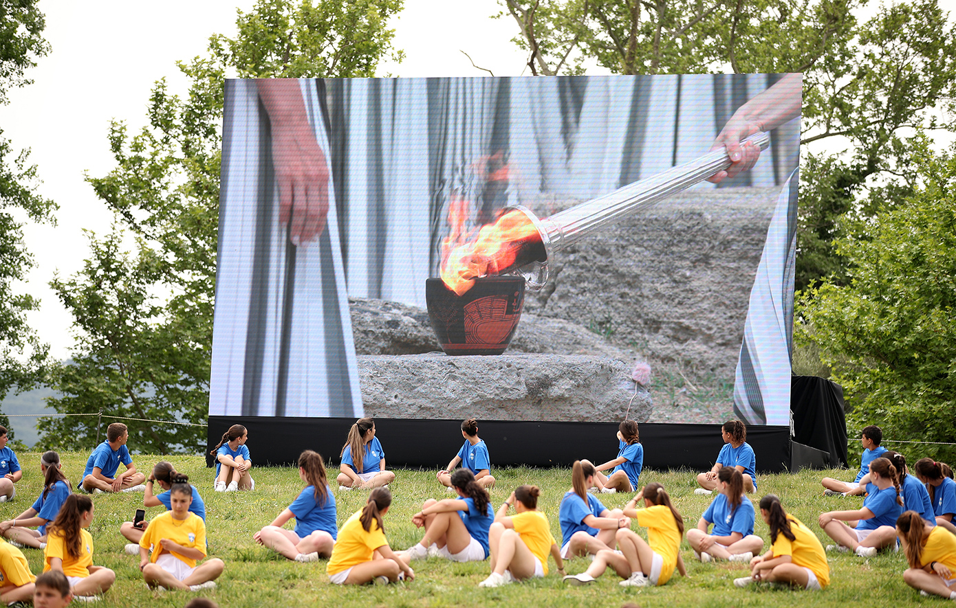 Η Τελετή (παρουσιαστής ο Νίκος Αλιάγας), εμπνευσμένη από την αρχαιότητα, πραγματοποιήθηκε, παρουσία της Προέδρου της Ελληνικής Δημοκρατίας Κατερίνας Σακελλαροπούλου, στην Αρχαία Ολυμπία, σύμφωνα με το παραδοσιακό τελετουργικό, ξανά με πλήθος κόσμου μετά από δύο διοργανώσεις που έχασαν τη μεγάλη «λάμψη» τους, εξαιτίας των περιορισμών που συνδέονται με την πανδημία της Covid-19, ήτοι τους Θερινούς Ολυμπιακούς Αγώνες του Τόκιο το 2021 και τους Χειμερινούς Ολυμπιακούς του Πεκίνου το 2022.