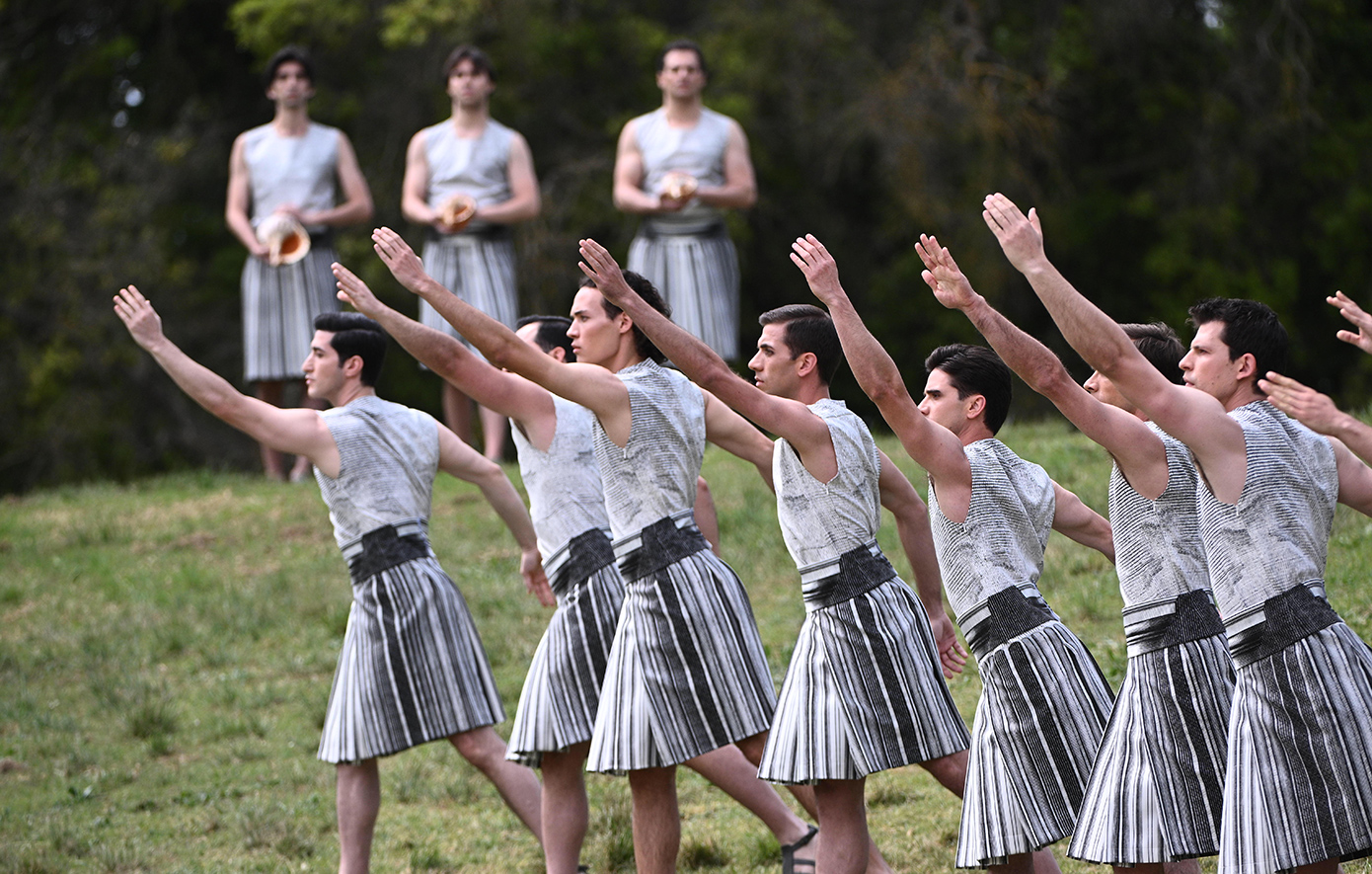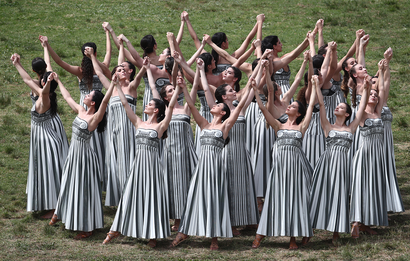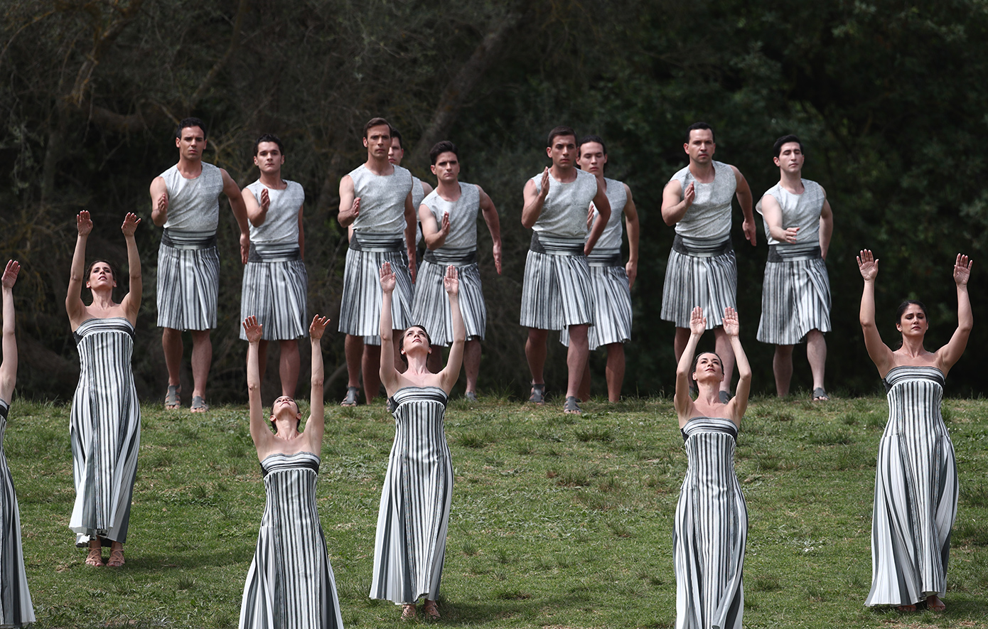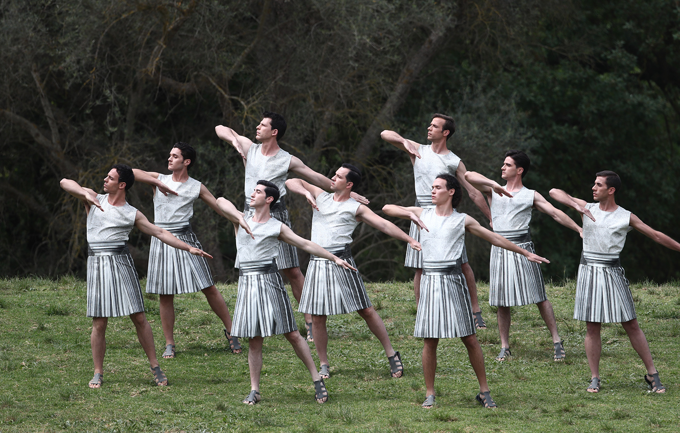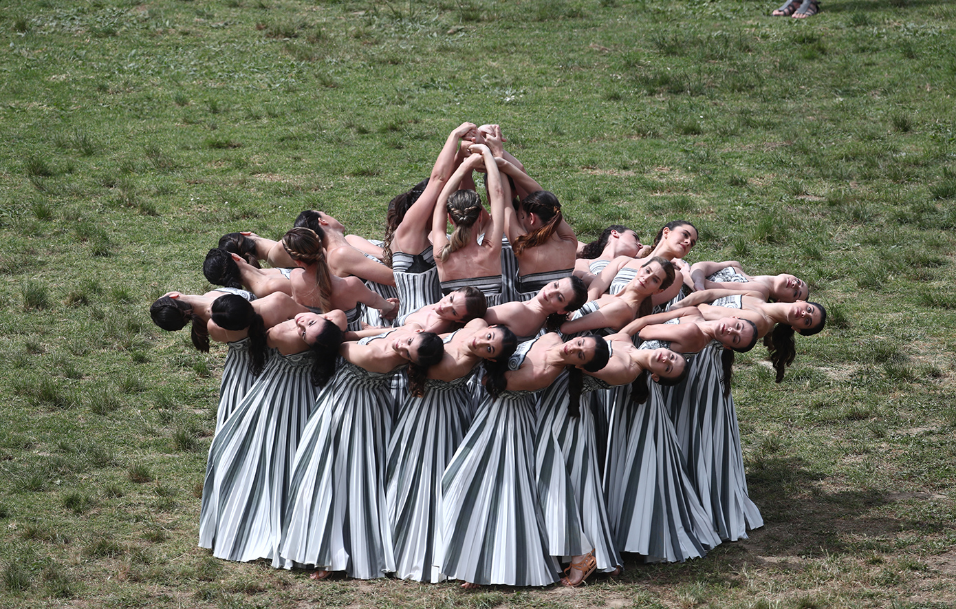 Μετά το άναμμα τη Ολυμπιακής Φλόγας ακολούθησε ο Χορός των Ιερειών και των 15 Κούρων στο χορευτικό που δημιούργησε και σκηνοθέτησε η Χορογράφος Άρτεμις Ιγνατίου, με ενδυμασίες της Μαίρης Κατράντζου, υπό τους ήχους της μουσικής του συνθέτη Δημήτρη Παπαδημητρίου, πριν η Πρωθιέρεια Μαίρη Μηνά εισέλθει με την Ολυμπιακή Φλόγα στο Αρχαίο Στάδιο για να την παραδώσει στoν πρώτο Λαμπαδηδρόμο, Χρυσό Ολυμπιονίκη της Κωπηλασίας, Στέφανο Ντούσκο.