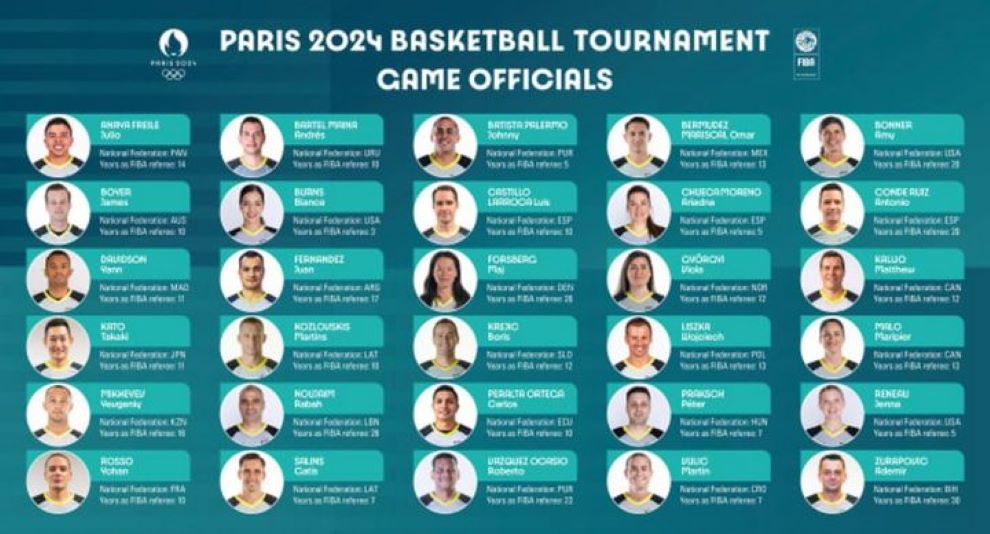 Η τελική λίστα της FIBA για τους διαιτητές, που θα διευθύνουν τις αναμετρήσεις στο μπασκετικό τουρνουά των Ολυμπιακών Αγώνων, δεν περιλαμβάνει κανέναν Έλληνα και καμία Ελληνίδα.