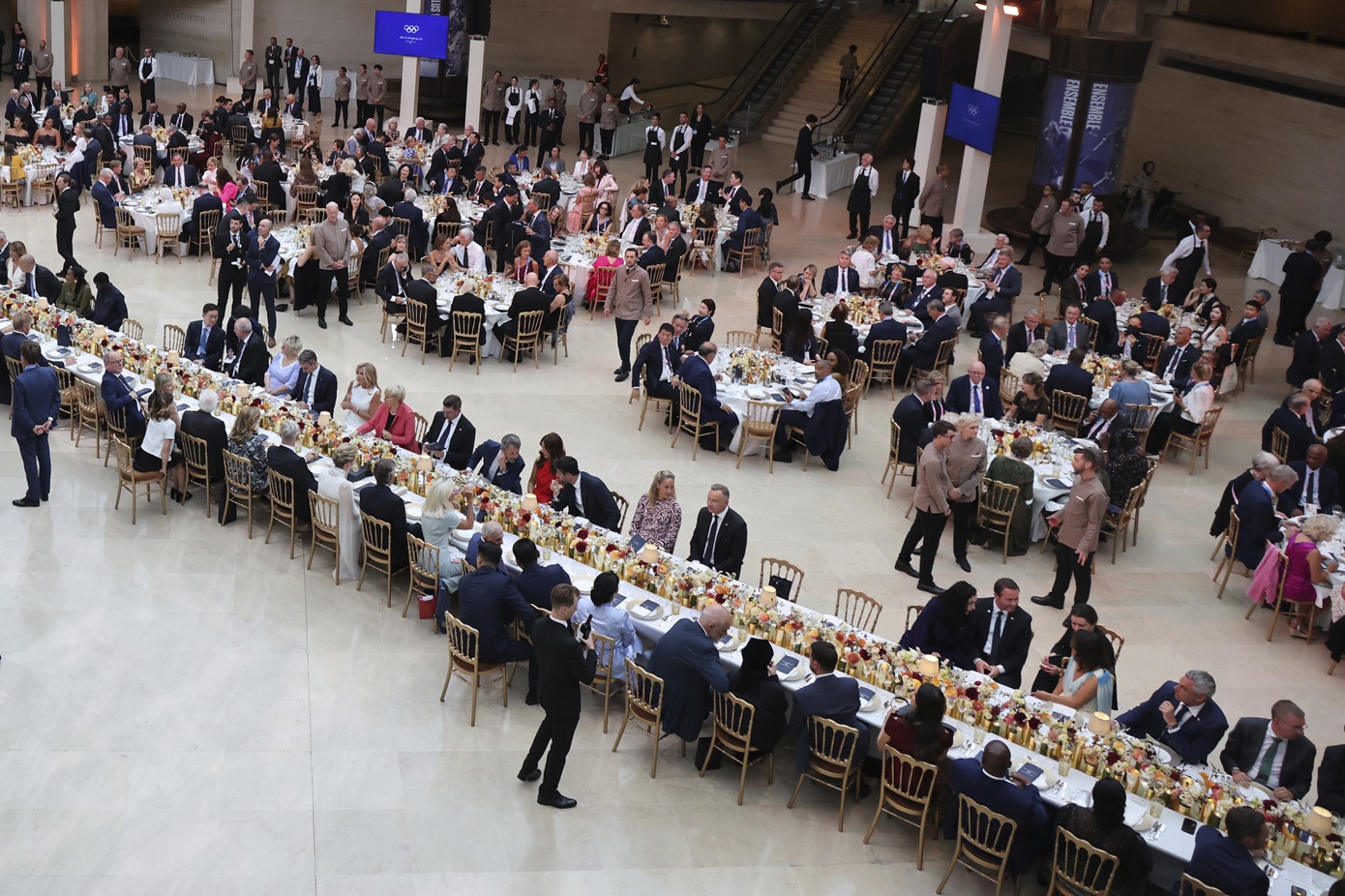 Ο Εμανουέλ Μακρόν υποδέχτηκε το βράδυ της Πέμπτης στο Λούβρο ηγέτες και διεθνείς προσωπικότητες από όλο τον κόσμο για το δείπνο πριν την επίσημη έναρξη των Ολυμπιακών Αγώνων 2024 στο Παρίσι την Παρασκευή 26/07.