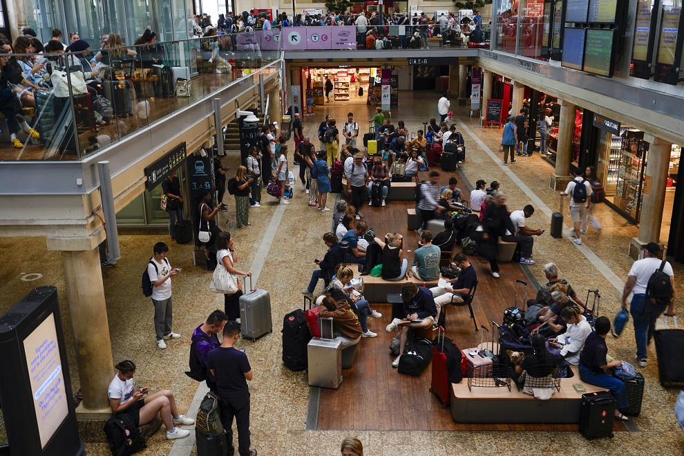 Στον σταθμό Μονπαρνάς στο Παρίσι, που εξυπηρετείται από τη δυτική και τη νοτιοδυτική γραμμή τρένων υψηλής ταχύτητας, οι ταξιδιώτες παρακολουθούν με ηρεμία τις οθόνες. Στις αναχωρήσεις τρένων εμφανίζεται καθυστέρηση έως και δύο ωρών, ενώ ακόμη μεγαλύτερη καθυστέρηση εμφανίζεται στις αφίξεις.