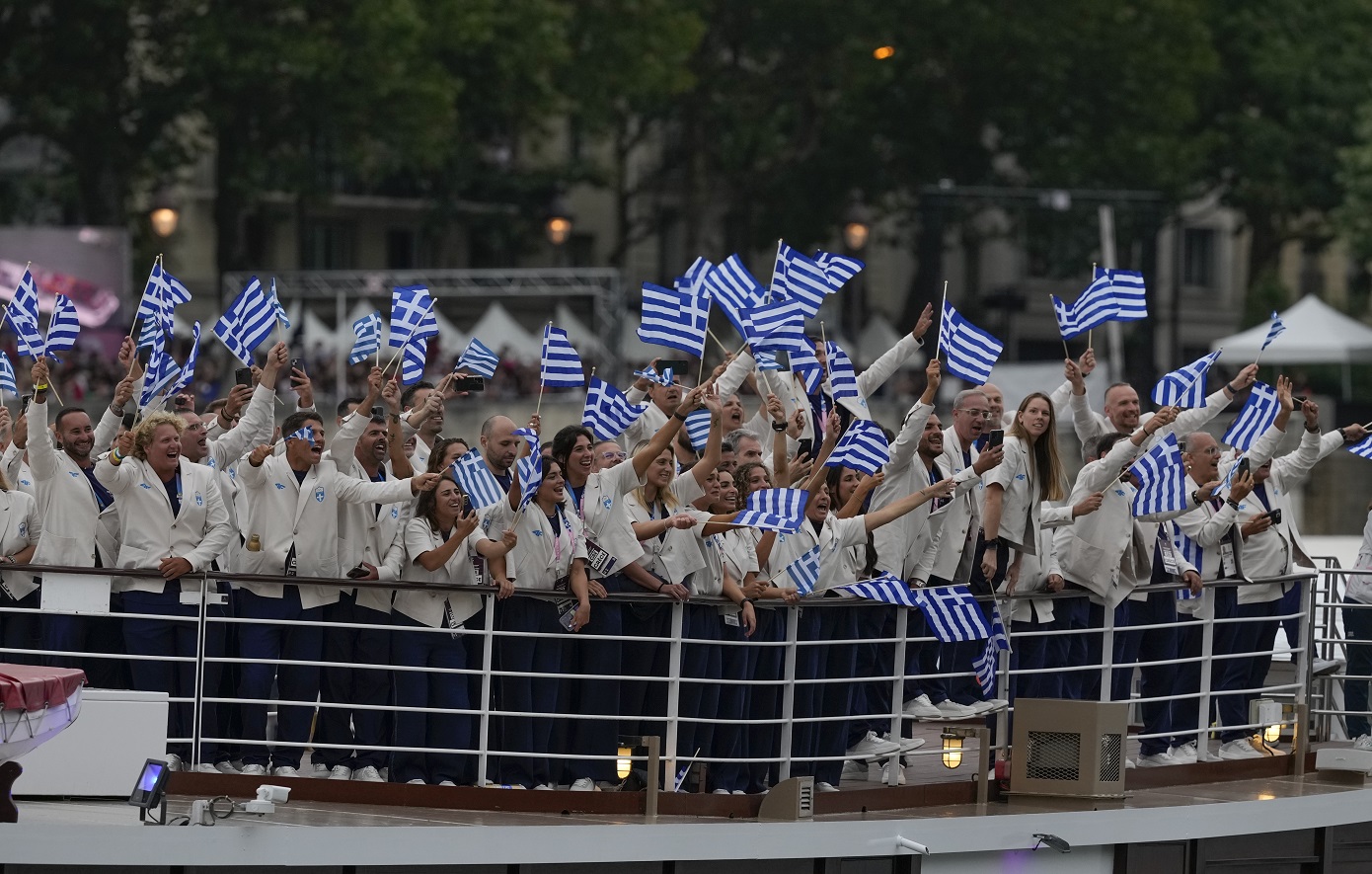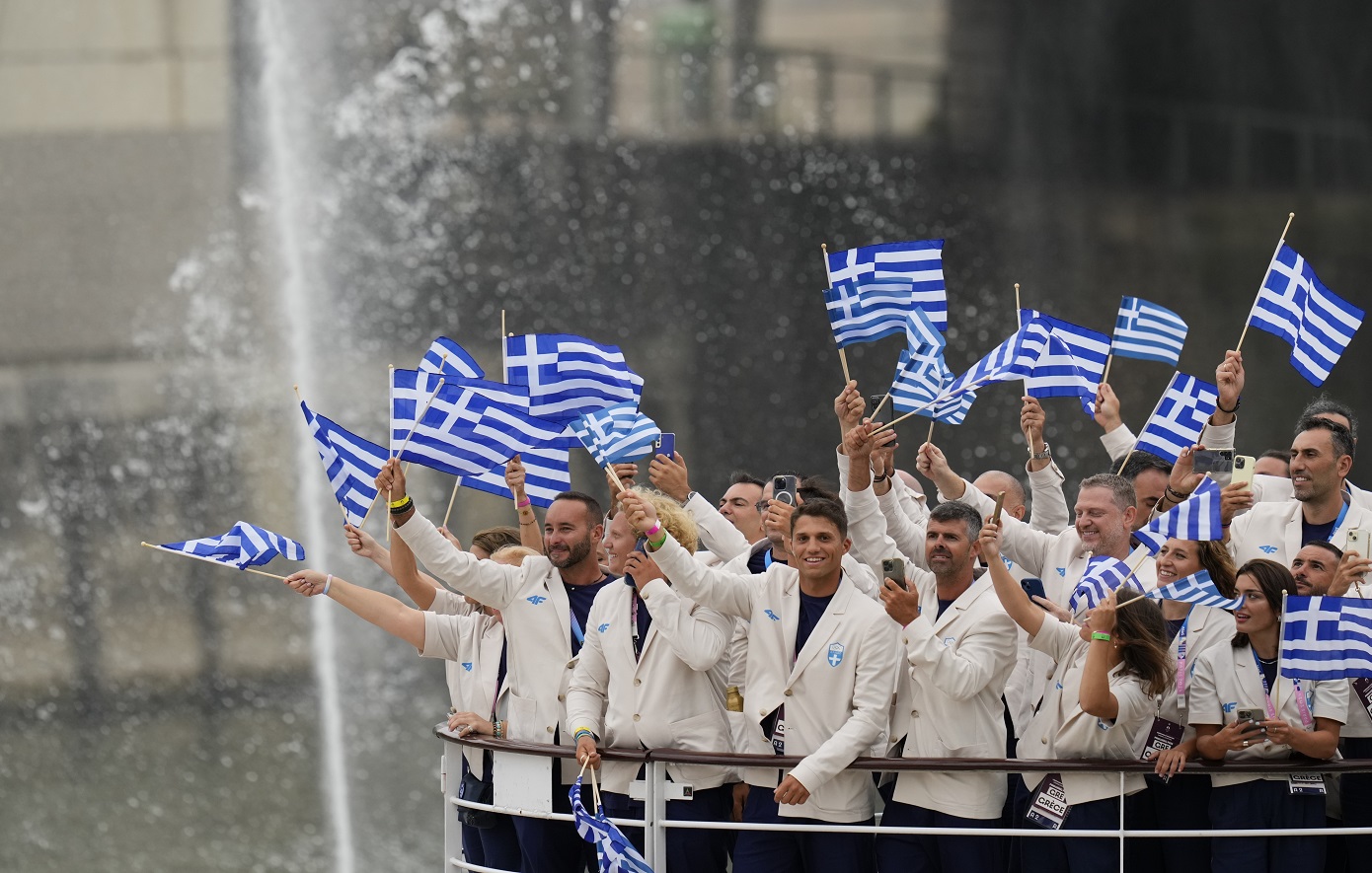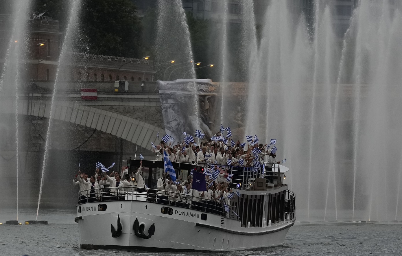Το πρώτο σκάφος που άνοιξε τη ναυτική παρέλαση που αντικατέστησε την παραδοσιακή παρέλαση στους Ολυμπιακούς Αγώνες του Παρισιού είχε την ελληνική αποστολή.