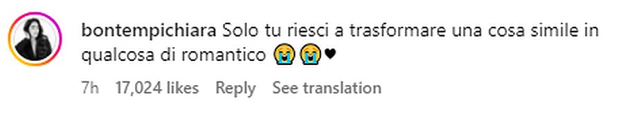 «Μόνο εσύ θα μπορούσες να το μετατρέψεις αυτό σε κάτι ρομαντικό», έγραψε η Κιάρα κάτω από την απολογία του συζύγου της.