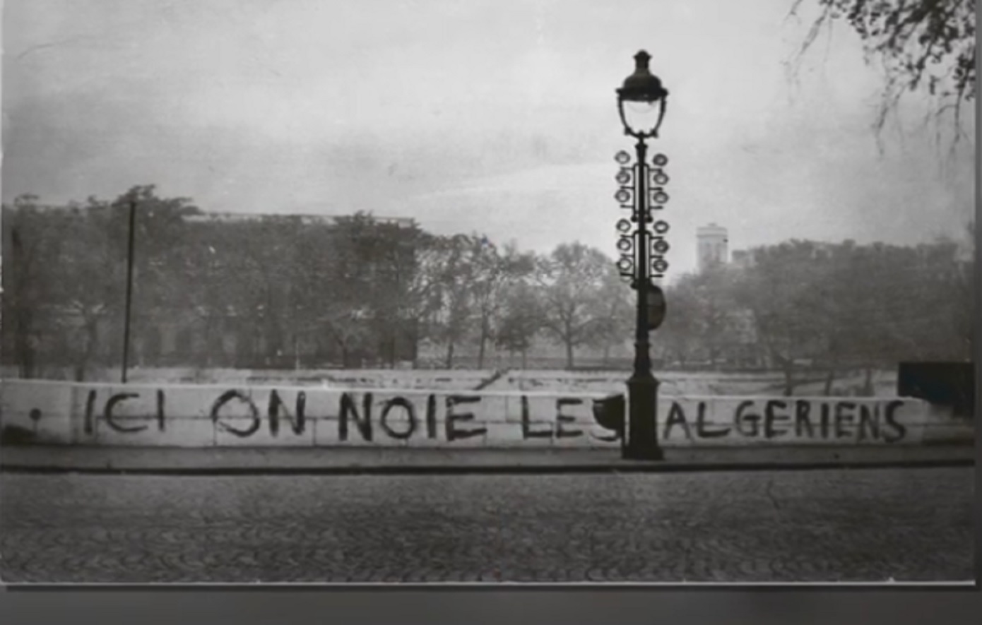 Λίγο μετά τη σφαγή στο Παρίσι το 1961, κάποιοι ακτιβιστές έγραψαν στη γέφυρα απ’ όπου η Αστυνομία ξεφορτώθηκε τα πτώματα των Αλγερινών «Εδώ πνίγουμε Αλγερινούς». Το σύνθημα σβήστηκε φυσικά αμέσως από τις αστυνομικές δυνάμεις, όμως η φωτογραφία έμεινε στην ιστορία.
