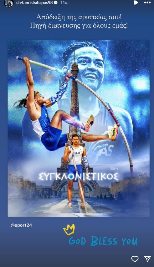 «Απόδειξη της αριστείας σου» έγραψε για τον αθλητή του επί κοντώ ο Στέφανος Τσιτσιπάς και συμπλήρωσε: «Πηγή έμπνευσης για όλους εμάς».