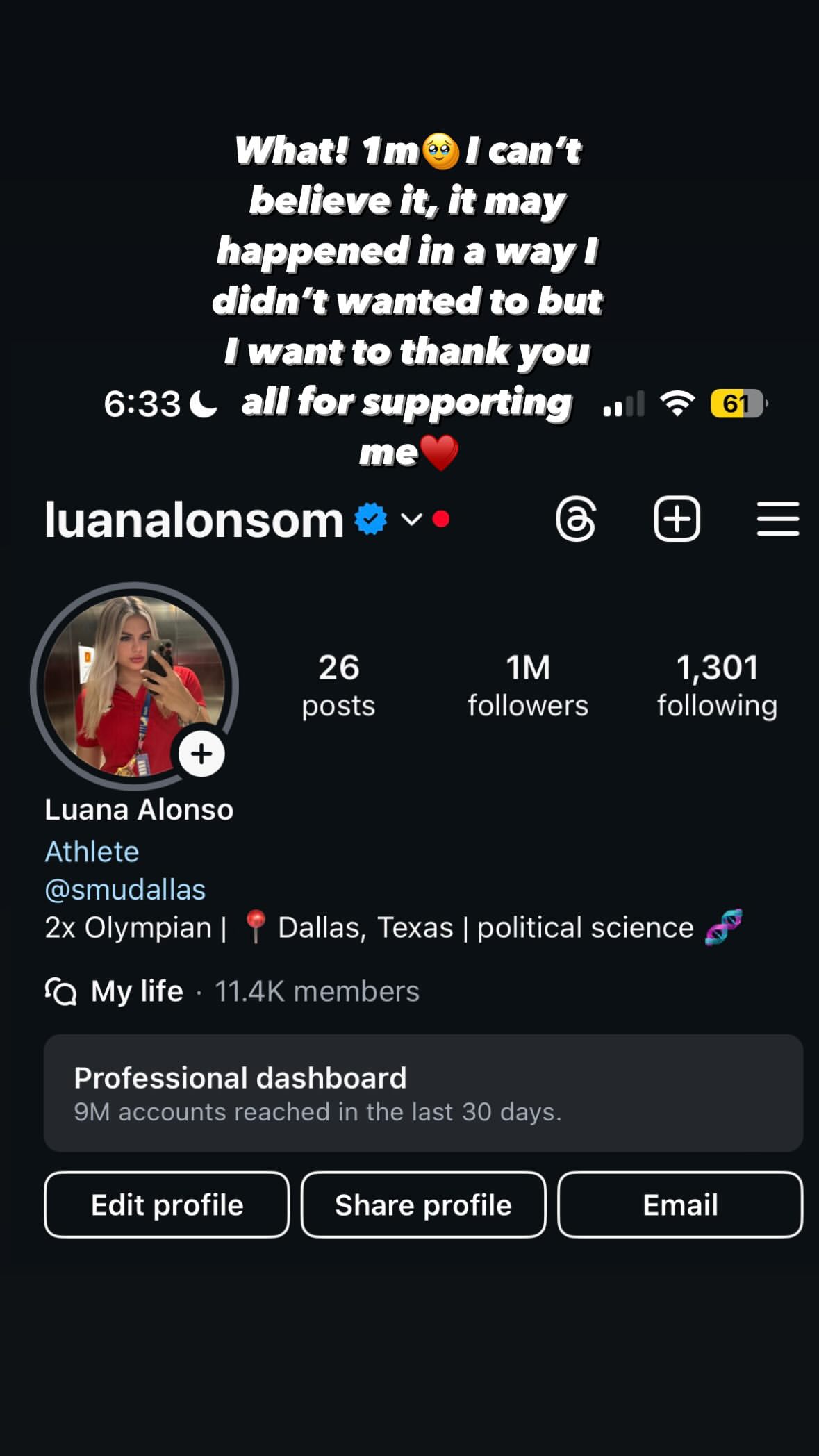 «Τι! 1 εκατομμύριο ακόλουθοι. Δεν μπορώ να το πιστέψω! Μπορεί να έγινε με έναν τρόπο που δεν ήθελα, αλλά θέλω να σας ευχαριστήσω όλους για τη στήριξη», έγραψε χαρακτηριστικά.