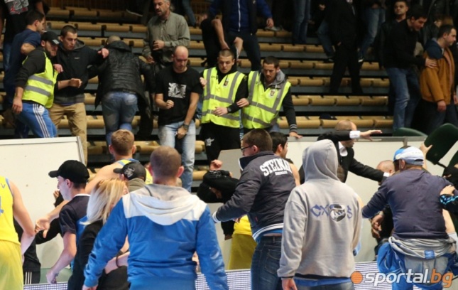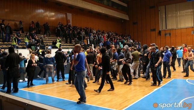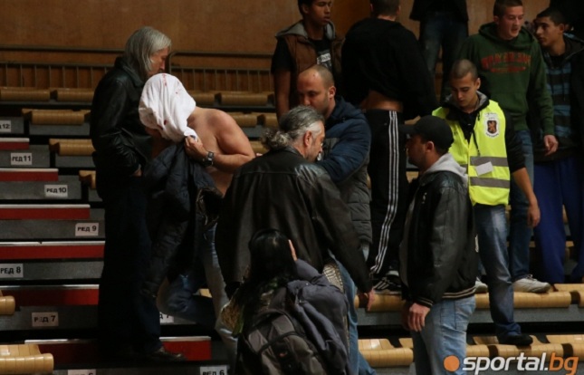 Συγκεκριμένα, μετά το τέλος του πρώτου δεκαλέπτου βούλγαροι οπαδοί έκαναν… ντου στην κερκίδα των φιλοξενούμενων, με αποτέλεσμα το κλειστό να μετατραπεί σε «πεδίο μάχης» για μερικά λεπτά.