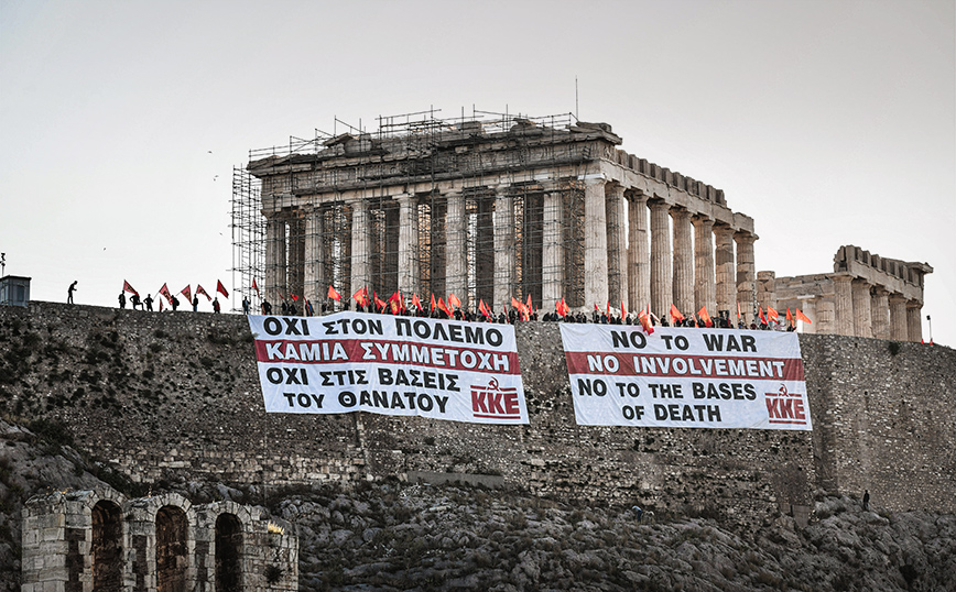 Παρέμβαση του Συνδικάτου Επισιτισμού Τουρισμού Ξενοδοχοϋπαλλήλων Αττικής με πανό στην Ακρόπολη
