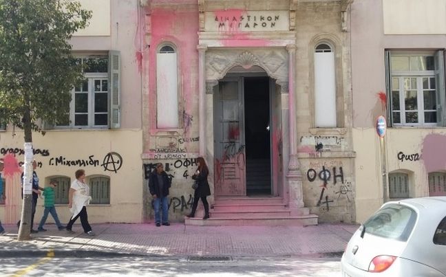Έριξαν μπογιές στο Δικαστικό Μέγαρο του Βόλου