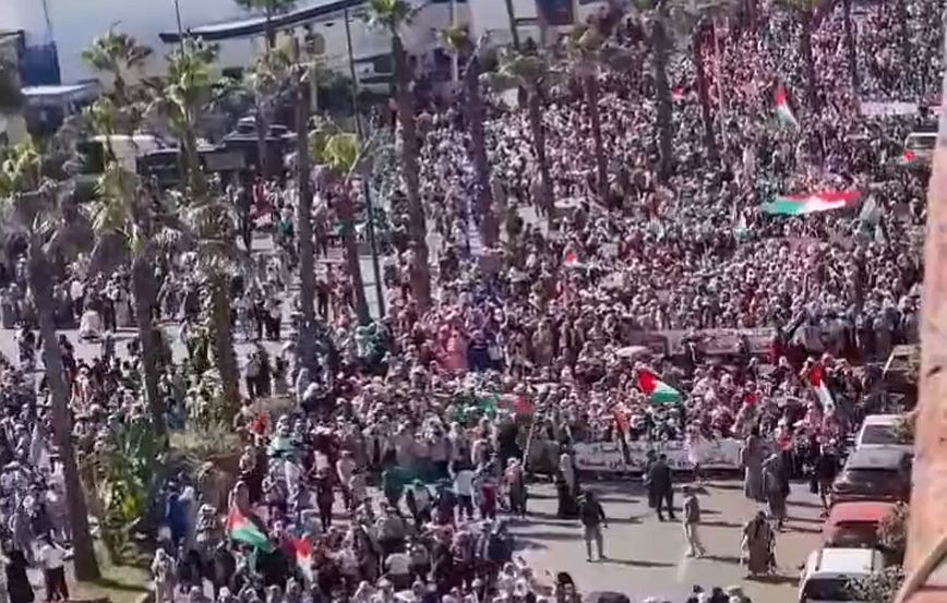 Χιλιάδες κόσμου διαδήλωσαν στη Καζαμπλάνκα στο Μαρόκο: «Σταματήστε τη γενοκτονία στη Γάζα», έγραφαν τα πανό
