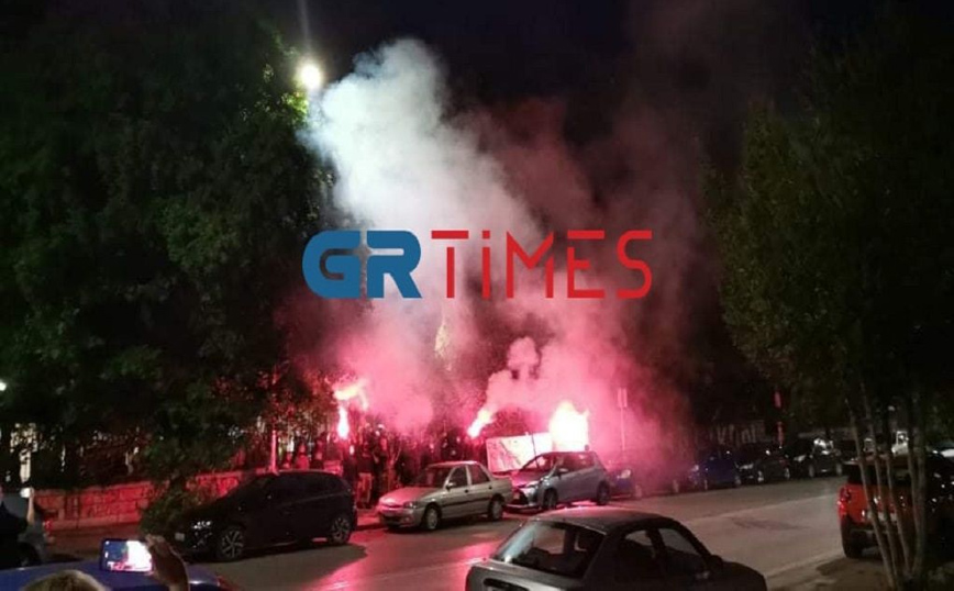 Άναψαν πυρσούς έξω από το ΑΠΘ – Η αστυνομία στο σημείο για την αποφυγή κορονοπάρτι