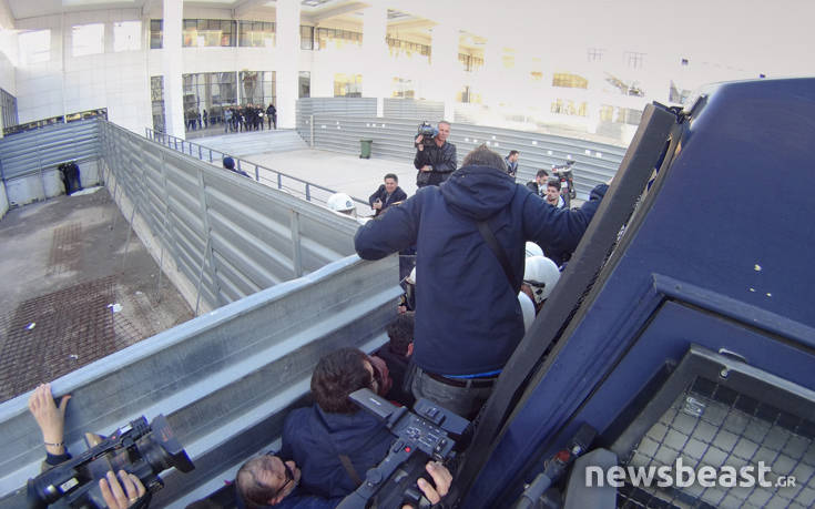 Τα μηνύματα στην κλούβα των ΜΑΤ έξω από το Ειρηνοδικείο