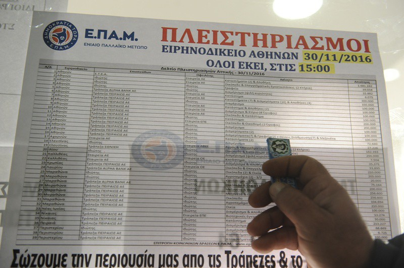 Συνθήματα και πανό στο Ειρηνοδικείο Αθηνών κατά των πλειστηριασμών