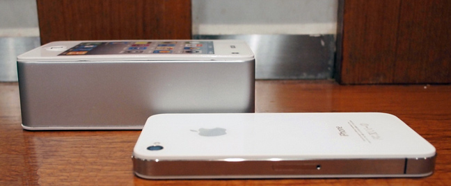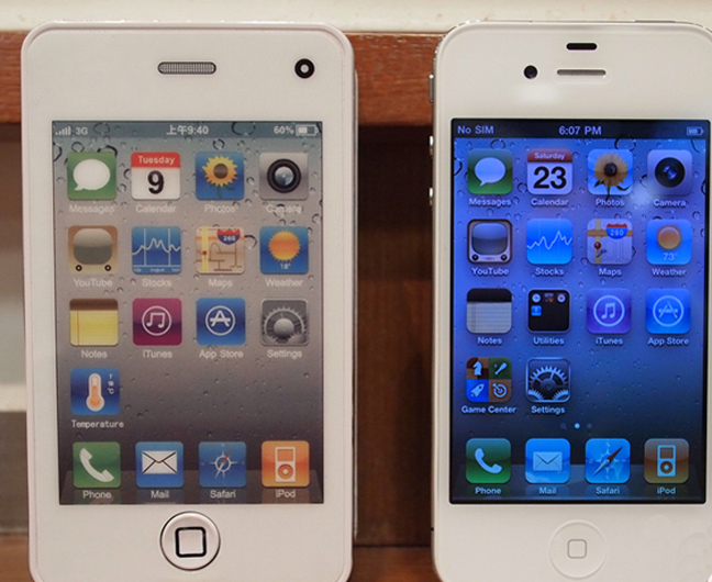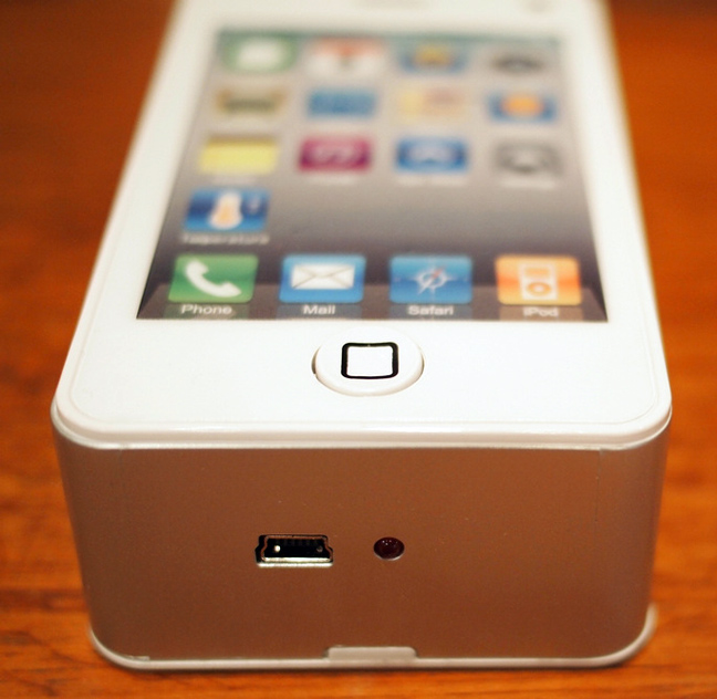 Αναφορικά με τις διαφορές, η πιο χαρακτηριστική είναι το πάχος της συσκευής: είναι περίπου 3 με 4 φορές παχύτερο από το πραγματικό iPhone! Στο κάτω μέρος, αντί για την παραδοσιακή θύρα των συσκευών της Apple, βρίσκεται μια θύρα mini USB που χρησιμοποιείται για τη φόρτιση του gadget καθώς και ένα φωτάκι λειτουργίας.