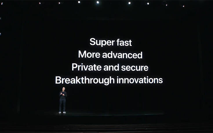 * Ο Τιμ Κουκ βγαίνει στη σκηνή, μόνος του, χωρίς κοινό, σε μια διαφορετική παρουσίαση, όπως αναμενόταν.