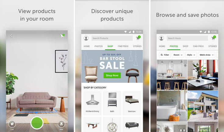Το app περιέχει αναρίθμητες διαφορετικές κατηγορίες, στις οποίες συμπεριλαμβάνεται και αυτή η πελώρια βάση δεδομένων με 16 εκατ. φωτογραφίες υψηλής ανάλυσης με ιδέες και προτάσεις, τις οποίες μπορείς να φιλτράρεις όπως αγαπάς, σύμφωνα με το στιλ, το δωμάτιο κ.λπ.