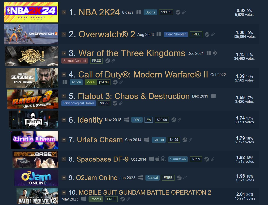 Μπορεί πρόσφατα το Overwatch 2 να ανέβηκε στην πρώτη θέση των χειρότερων PC games όλων των εποχών στο Steam, όμως λίγες ημέρες μετά την κυκλοφορία του το NBA2K24 κατάφερε να το ρίξει από την κορυφή.
