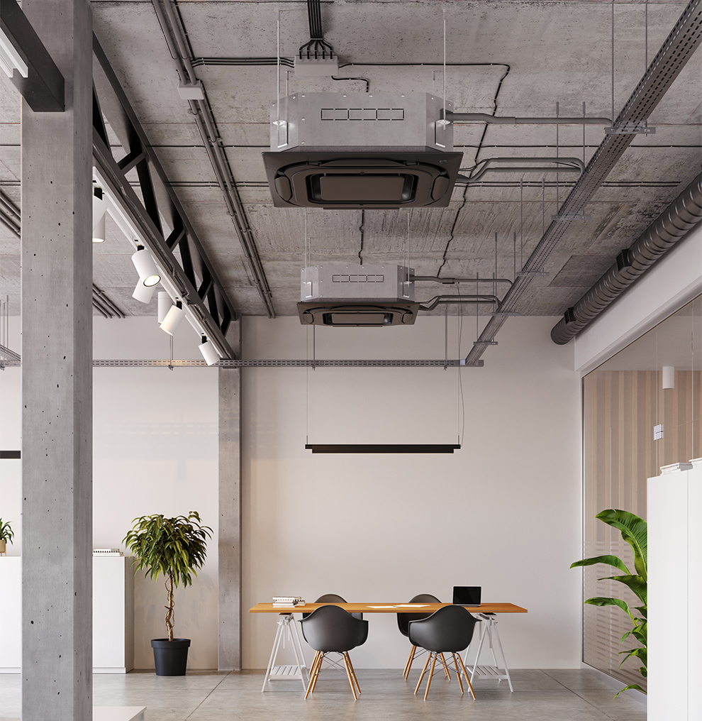 - Αναρτώμενες οροφής: Με έξοδο αέρα 4 κατευθύνσεων που εξαλείφει τις νεκρές ζώνες.