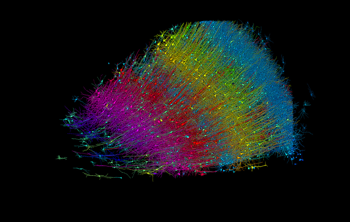 Η συγκεκριμένη ανακατασκευή αφορά ένα κυβικό χιλιοστό εγκεφαλικού ιστού από τον κροταφικό φλοιό, που ωστόσο περιέχει περίπου 57.000 κύτταρα, 230 χιλιοστά αιμοφόρων αγγείων και σχεδόν 150 εκατομμύρια συνάψεις. Το δείγμα ελήφθη από έναν ασθενή με επιληψία, ο οποίος υποβλήθηκε σε χειρουργική επέμβαση.
