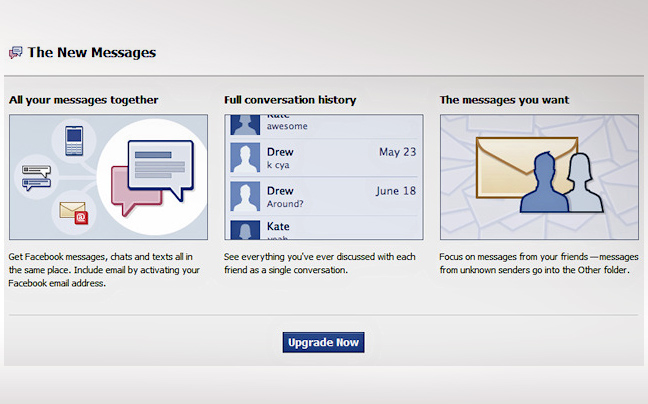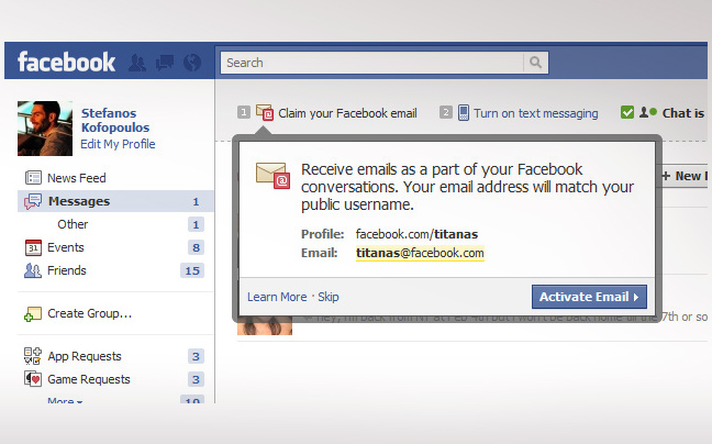 Δεν είμαι σίγουρος για τα κριτήρια του Facebook και το roll out του νέου Facebook messages, υποψιάζομαι ότι είναι γεωγραφικά, ο νέος τρόπος επικοινωνίας όμως είναι σημαντικά καλύτερος από το παρελθόν. Το Facebook προσφέρει εκτός από email της μορφής όνομα@facebook.com, ένα βελτιωμένο τρόπο διαχείρισης των μηνυμάτων και του chat με την ενσωμάτωση της δυνατότητας χρήσης SMS από κινητά. Στέλνετε μήνυμα από το Facebook η κάνετε chat, όλα πηγαίνουν στο ίδιο σημείο για να ξέρετε τι έχετε πει, πότε και με ποιον. Λαμβάνετε SMS από κινητό φίλου και το μήνυμα εμφανίζεται στο νέο Facebook mailbox.