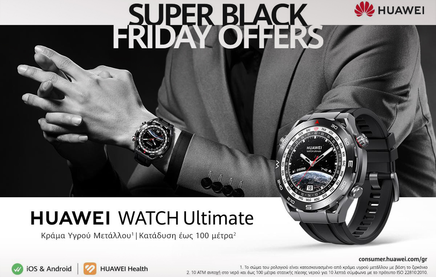 Επωφεληθείτε τώρα από τις εντυπωσιακές Black Friday προσφορές της Huawei που ήδη ξεκίνησαν και ισχύουν μέχρι και 2 Δεκεμβρίου! Ανακαλύψτε κορυφαία smartwatches, smartphones, tablet και ακουστικά σε τιμές που δεν χάνονται!
