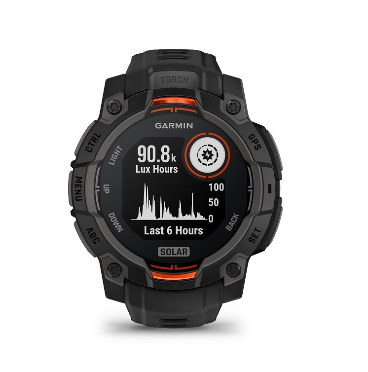 - Αυξημένη ηλιακή αποτελεσματικότητα: Ένας μεγαλύτερος, πιο αποτελεσματικός φακός ηλιακής φόρτισης εκμεταλλεύεται ακόμα καλύτερα την ενέργεια του ήλιου. Σε σύγκριση με το Instinct 2 Solar, το νέο Instinct 3 Solar στα 50 χιλ, έχει πάνω από πέντε φορές την αυτονομία του σε λειτουργία GPS με ηλιακή φόρτιση.