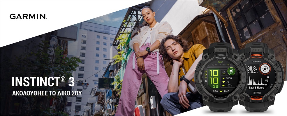«Με μοντέρνα, περιορισμένης κυκλοφορίας χρώματα και ανθεκτικό σχεδιασμό, το Instinct 3 είναι το smartwatch που μπορείς να φοράς πάντα και παντού. Εξοπλισμένο με λειτουργίες διασύνδεσης, δημοφιλή αθλητικές εφαρμογές και παρακολούθηση υγείας και ευεξίας 24/7, η πιο πρόσφατη προσθήκη στη σειρά είναι εδώ για να σε βοηθήσει να ακολουθήσεις τα πάθη σου – όποια και αν είναι αυτά.»