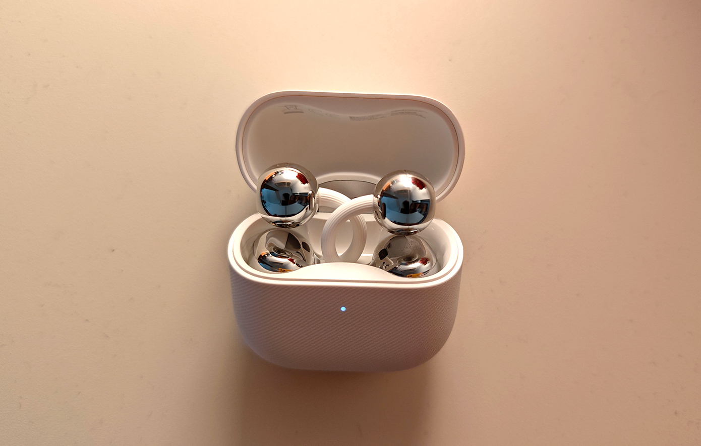 Ακόμα και η θήκη έχει κάτι από μόδα πάνω της. Όταν την ανοίγεις και βλέπεις τα δύο ακουστικά να κάθονται συμμετρικά, αποπνέει μια αίσθηση οπτικής ισορροπίας, σαν μικρή κοσμηματοθήκη που κουβαλάς στο χέρι, με έμπνευση από εμβληματικές γραμμές υψηλής αισθητικής. Θυμίζει πολύ το σήμα της Chanel!