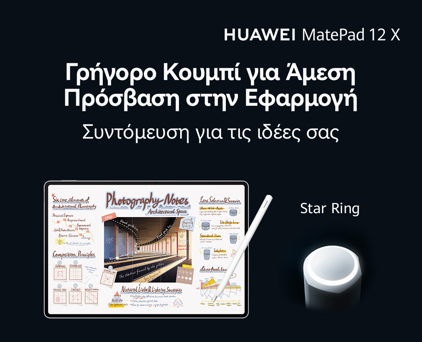 Εκεί έρχεται το HUAWEI MatePad 12 X. Όχι σαν μια ακόμα οθόνη, αλλά σαν μια συσκευή που χωράει σε κάθε ημέρα σου. Το ανοίγεις το πρωί για να οργανωθείς, το χρησιμοποιείς μέσα στη μέρα για δουλειά, το παίρνεις μαζί σου στην αγαπημένη σου καφετέρια για να σημειώσεις ιδέες, το ξαναπιάνεις το βράδυ για να χαλαρώσεις.