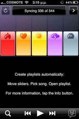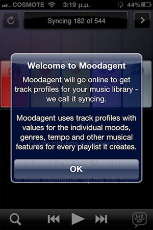 Είναι μια επιλογή μουσικών κομματιών, όχι albums, σύμφωνα με τις εδώ και τώρα συναισθηματικές ανάγκες. Εύκολο, γρήγορο και πανέξυπνο. Αν το συνδυάζεται με ένα iPhone Dock με καλά ηχεία το αποτέλεσμα είναι τρομερό. Υπάρχει η δωρεάν έκδοση του Moodagent και φυσικά το Moodagent για 0.79 ευρώ που αξίζει κάθε cent. Must have iPhone app που όμως θέλει μερικές βελτιώσει στα σημεία γιατί κάποια από τα αποτελέσματα είναι μάλλον ασύνδετα μεταξύ τους.