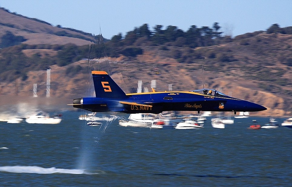 Ο παράτολμος πιλότος δε φαίνεται να πτοείται καθόλου από την ταχύτητα που αναπτύσσει το αεροσκάφος. Το αμερικανικό αεροσκάφος του ναυτικού F/A-18 Hornet «τρέχοντας» με 800 χιλιόμετρα την ώρα «έσκισε» τον αέρα στο πέρασμά του και αυτό αποτυπώθηκε σε μια εντυπωσιακή φωτογραφία από τον Joerg Amann.
