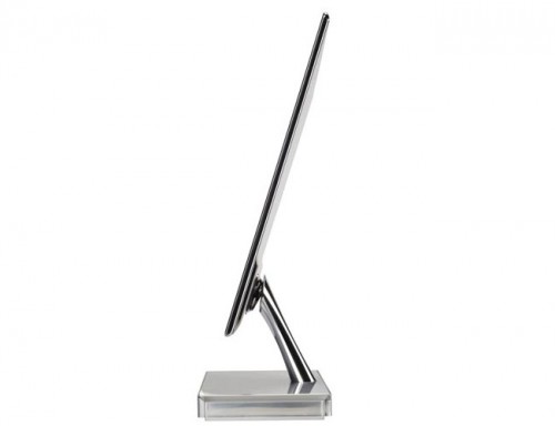 Η οθόνη στηρίζεται σε ένα εξίσου όμορφο μεταλλικό πόδι, του οποίου η λογική ακολουθεί το φινίρισμα της οθόνης.