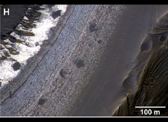 Τέλος ο κρατήρας Holden, κοντά στον προηγούμενο, μια περιοχή στην οποία παραμένουν ορατές οι όχθες από ρεματιές και ιζήματα από κάποιον αρχαίο ποταμό
