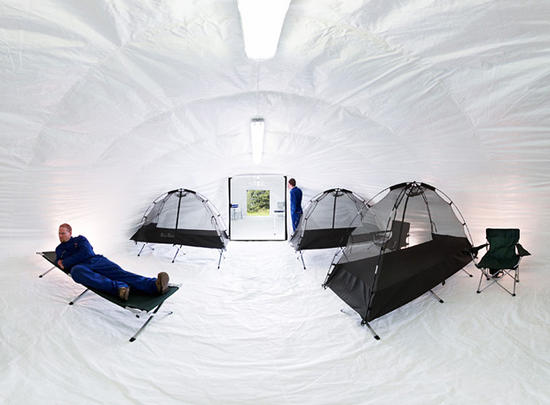 Δύο Βρετανοί μηχανικοί ο Πίτερ Μπρούιν και ο Γουίλ Κρόφορντ, σχεδίασαν ένα είδος φουσκωτού υφασμάτινου καταφυγίου το Concrete Canvas Shelters. Αυτό όμως, μόλις ψεκαστεί με νερό μετασχηματίζεται σε σκληρό σκυρόδεμα μέσα σε 24 ώρες. Το αρχικό σχέδιο έχει κερδίσει έναν μεγάλο αριθμό βραβείων, μεταξύ των οποίων και το βραβείο Saatchi & Saatchi.