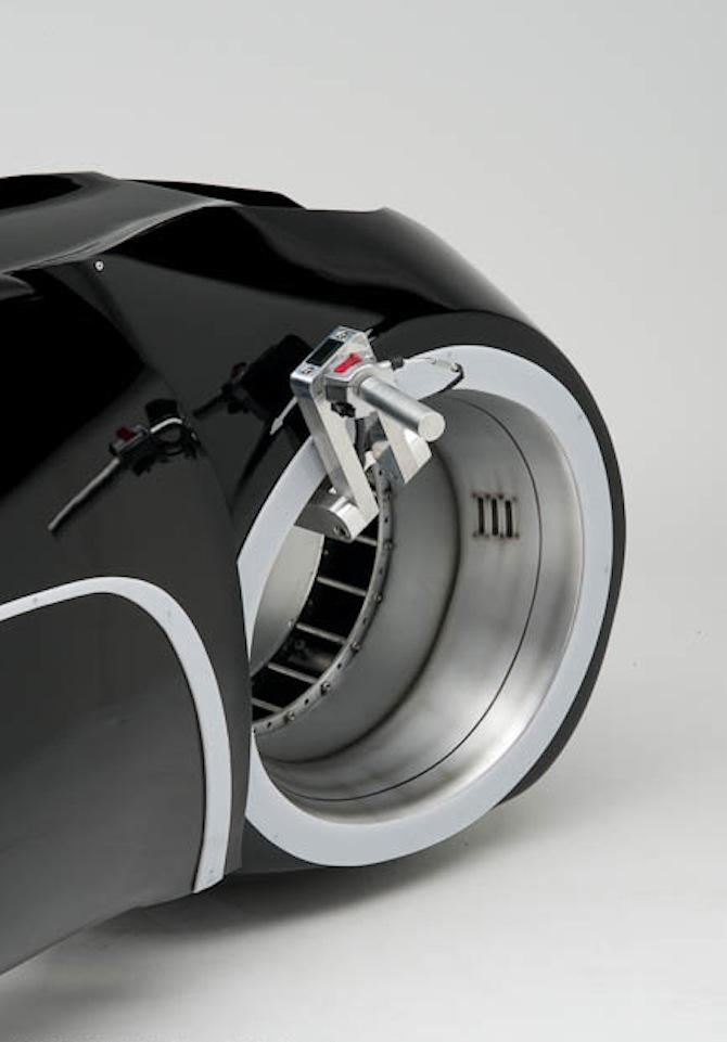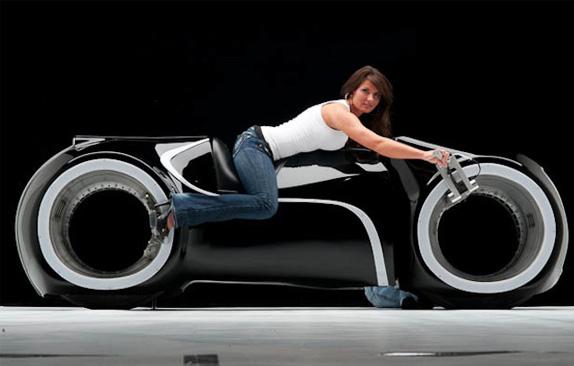 Η ταινία Τρον, υπήρξε σταθμός στην ιστορία των ταινιών επιστημονικής φαντασίας. Τόσο στην πρώτη ταινία του 1982, όσο και στην πρόσφατη του 2010, σταθερό ορόσημο είναι η φωτεινή μοτοσυκλέτα (Light Cycle), με την οποία πραματοποιόντουσαν οι διάφορες μάχες στο ψηφιακό αυτό κόσμο. Τι θα λέγατε αν θα μπορούσατε να καβαλήσετε μία τέτοια μηχανή, χωρίς να αφήνετε όμως αυτή τη περιβόητη δέσμη φωτός από πίσω. Είναι μία καθόλα νόμιμη μοτοσυκλέτα, με μηχανή Suzuki 996cc , με δυστυχώς πολύ μικρό ρεζερβουάρ. Κατά τα άλλα κανονικά όπως και στην ταινία, πρακτικά ξαπλώνετε παράλληλα με το έδαφος. Καβαλήστε την εξατάχυτη μηχανή και καλές (σύντομες, προς το παρόν) βόλτες.