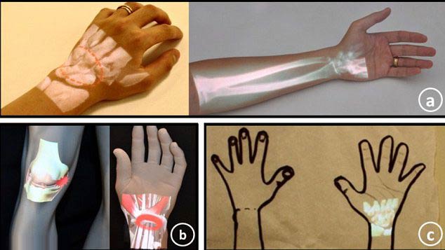 Η συσκευή πρακτικά προβάλει τις ήδη αποθηκευμένες φωτογραφίες μέσω του προτζέκτορα, πάνω στο δέρμα του ασθενούς. Οι αποθηκευμένες φωτογραφίες εκτείνονται σε φάσμα 6 ειδών τραυματισμών και σκοπό έχουν να δώσουν στον ασθενή να κατανοήσει καλύτερα την έκταση του τραυματισμού.