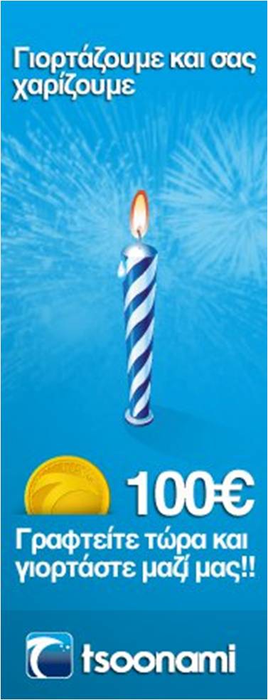 Από σήμερα ξεκίνησε μία ενέργεια με την οποία το site χαρίζει 100 ευρώ στα υπάρχοντα, αλλά και στα νέα μέλη που θα κάνουν εγγραφή στη σελίδα www.tsoonami.gr.