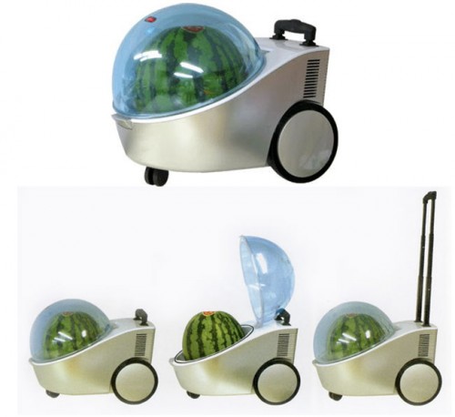 Με την πρωτότυπη αυτή συσκευή, η οποία συν τοις άλλοις σας βοηθά να το μεταφέρετε με άνεση χωρίς να κουράζετε τη μέση σας, σας επιτρέπει να διατηρείτε δροσερό το καρπούζι σας. Το παράξενο είναι ότι υπάρχει και επιλογή για θέρμανση του θαλάμου!