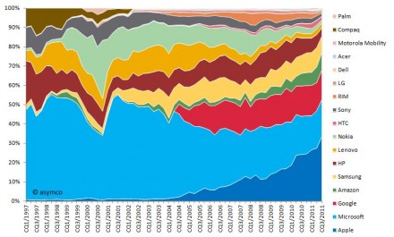 Σήμερα, η αποτίμηση των μετοχών της είναι περίπου ίση με τη συνδυασμένη κεφαλαιοποίηση των Acer, Amazon, Dell, Hewlett-Packard, HTC, Lenovo, LG, Motorola Mobility, η Nokia, η RIM, Samsung και Sony!