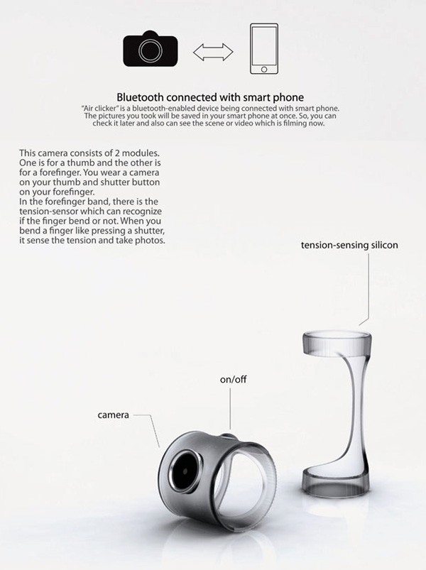 Αυτός ο νέος τρόπος σύλληψης της πραγματικότητας σε εικόνα ονομάζεται Air-Clicker. Πρόκειται για ένα πραγματικά «προχό» concept, που παρόμοιο μπορεί να έχουμε ξαναδεί στο παρελθόν υπό το μορφή όμως χειρονομίας. Η τεχνολογία για το concept αυτό μπορεί να είναι διαθέσιμη σε λίγα χρόνια και λογικά θα είναι με κάποιο είδος ασύρματης επικοινωνίας.